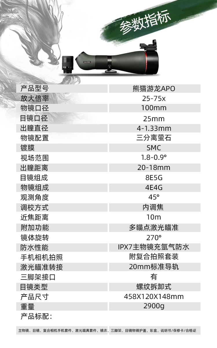 熊貓游龍 25-75X100螢石APO